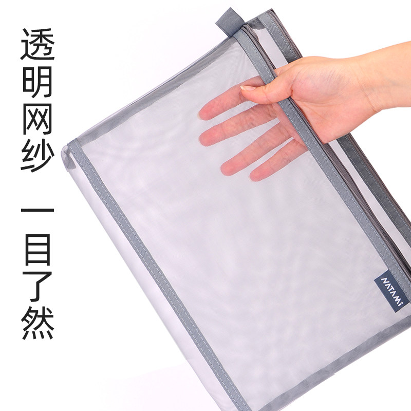 Nadome file bag zipper type transparent mesh roll file subject storage bag small a4b5 information bag file bag tutorial bag female primary school students retro ins Japanese cosmetics sample bag