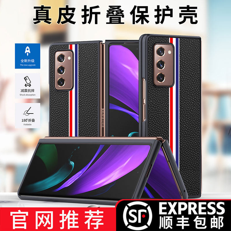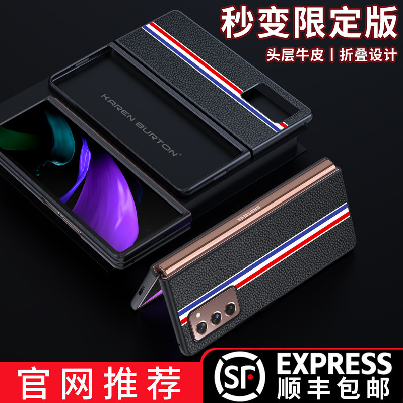 Samsung w21 mobile phone shell genuine leather galaxy fold2 original folding screen w2021 protective cover heart of the world ultra-thin limited edition sm-f9160 leather case zfold2