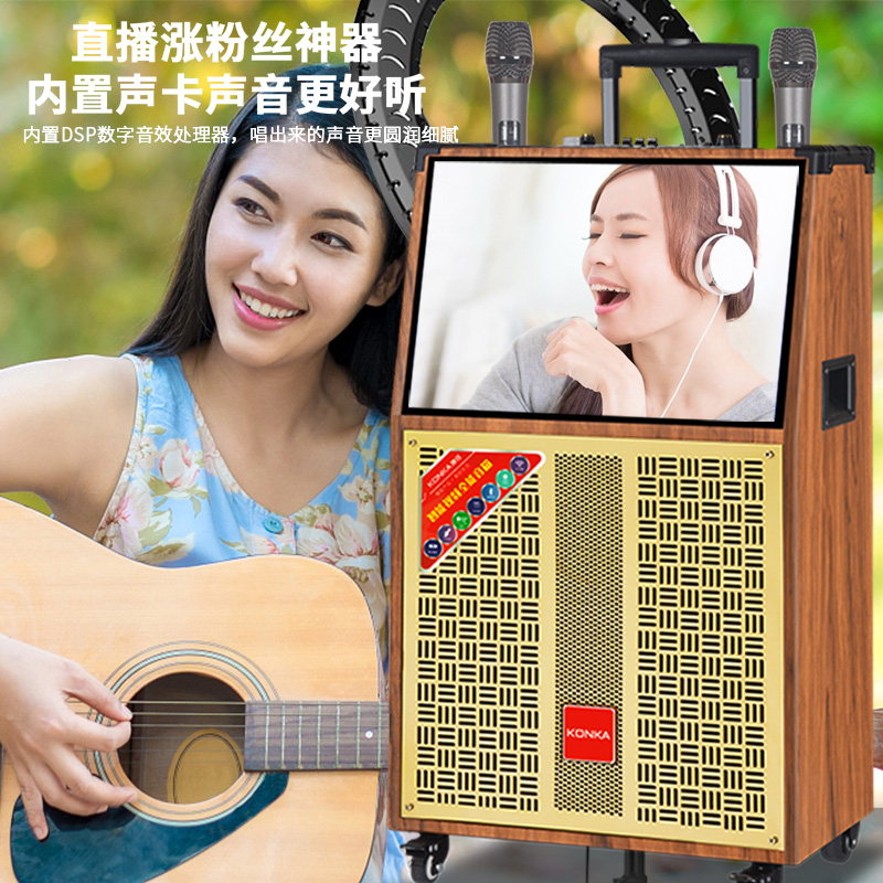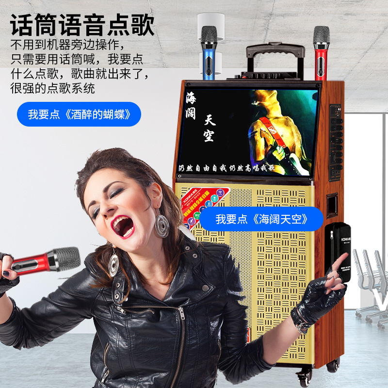 Conja Square Dance Film Sound Belt Display Screen Portable Home High power Llever speaker All moving ktv singing Heavy bass Big volume Outdoor microphone k Song Professional Performance Class