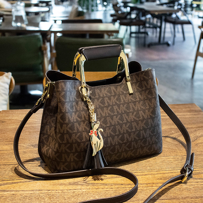Hong Kong women's bag new fashion printed large capacity bucket bag shoulder handbag Joker messenger bag tide