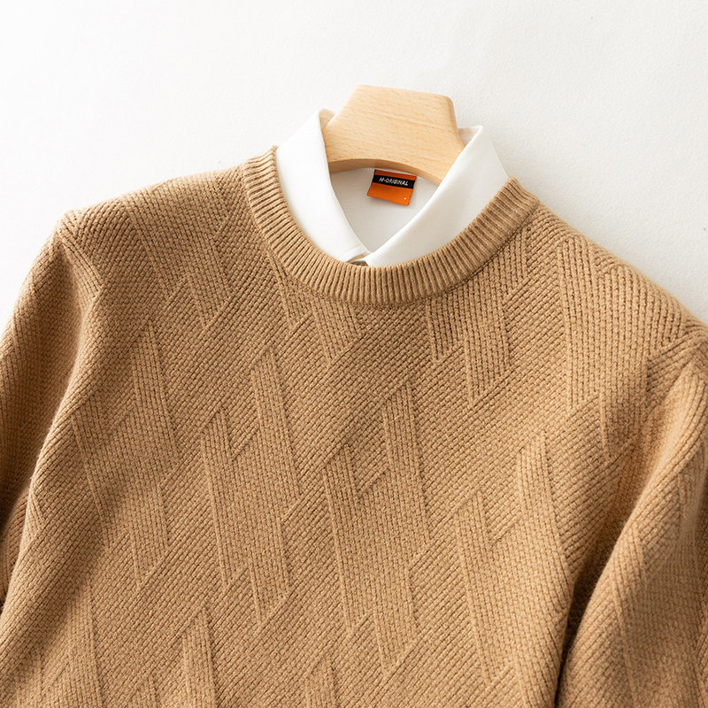 Men's wool sweater autumn and winter Korean version round neck cashmere sweater thickened youth bottoming sweater loose super thick knitted sweater