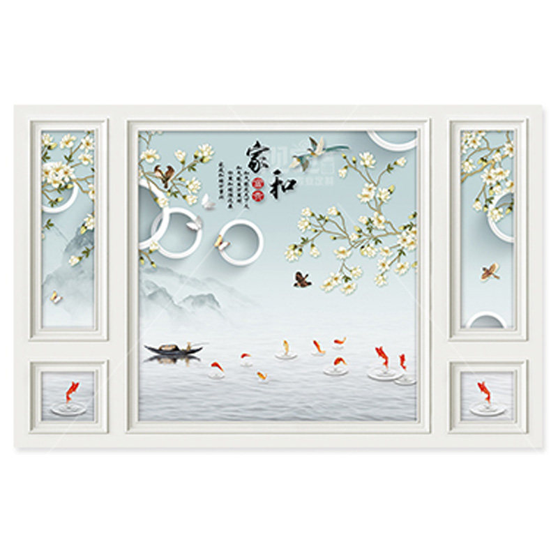 8d WOOD-WOOD FIBERBOARD PAINTING SEAMLESS SPLICING QUICK-FITTING PROTECTIVE WALL 3D NEW CHINESE HOME AND INTEGRATED BOARD TV BACKGROUND WALL