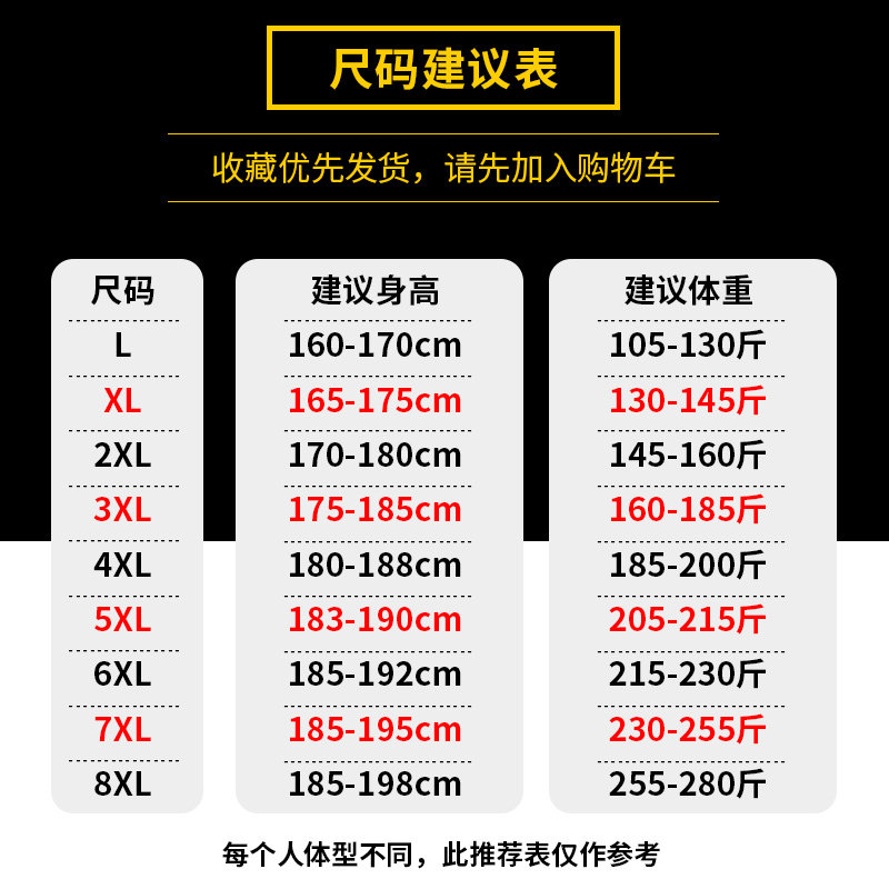 L XL 2XL 3XL 3XL 5XL 5XL 7XL 7XL 8XL 8XL 8XL