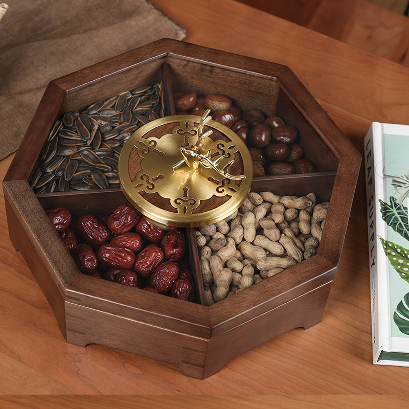 New Chinese style living room solid wood nut tray with lid home candy fruit tea fractional storage box melon seeds dried fruit box