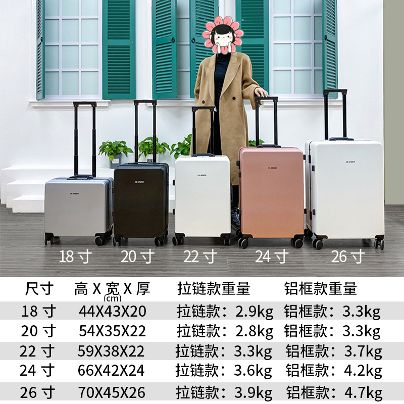 18 inches (square boarding) 20 inches (direct check-in) 22 inches (short trip good partner) 24 inches (travel best gold size) 26 inches (suitable for long haul items out