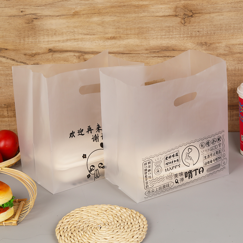 Custom Bread Packing Bag Takeaway Handbag Toast Cake Dessert Baking Packing Bag Milk Tea Fried Chicken Plastic Bag