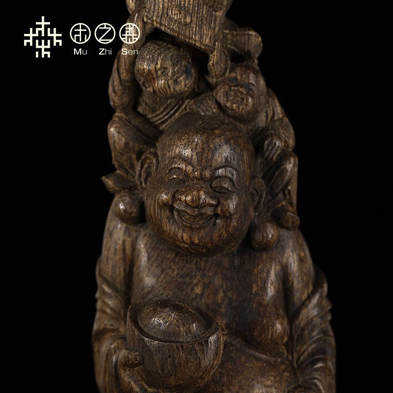 (Many sons and many blessings) Sin Chew Brunei submerged water-grade three-dimensional full-scale carving and aging old material agarwood ornament 100g