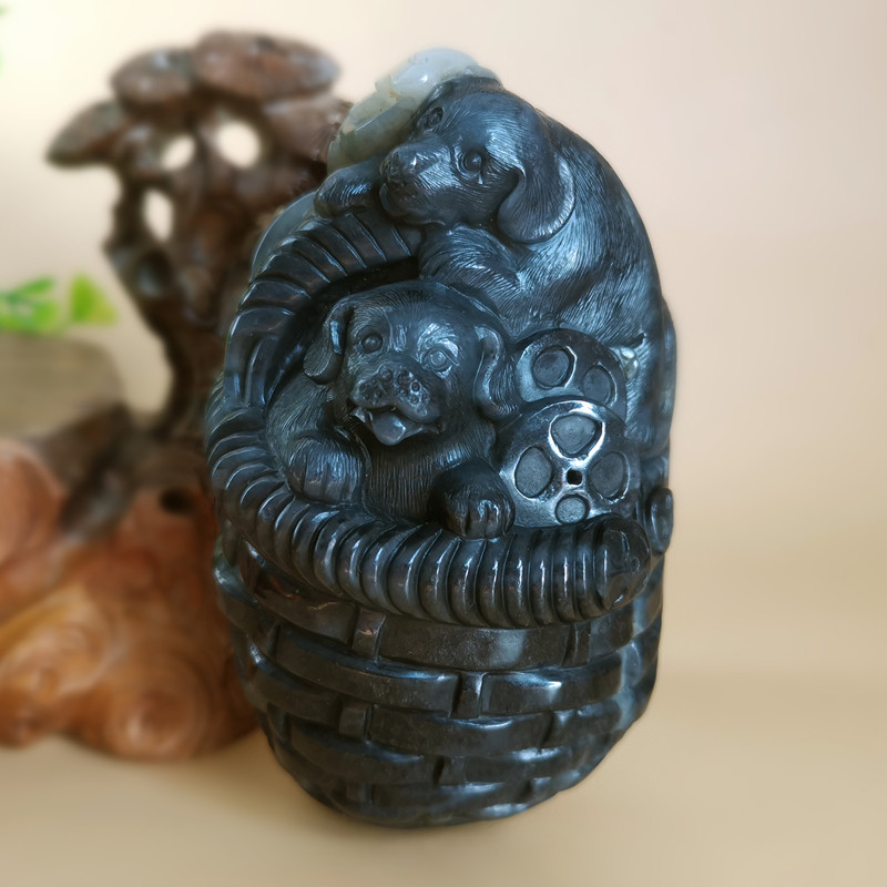 Xinjiang 2021 winter seed material ink jade blue and white hand handle pieces small ornaments boutique collection level appraisal live broadcast room