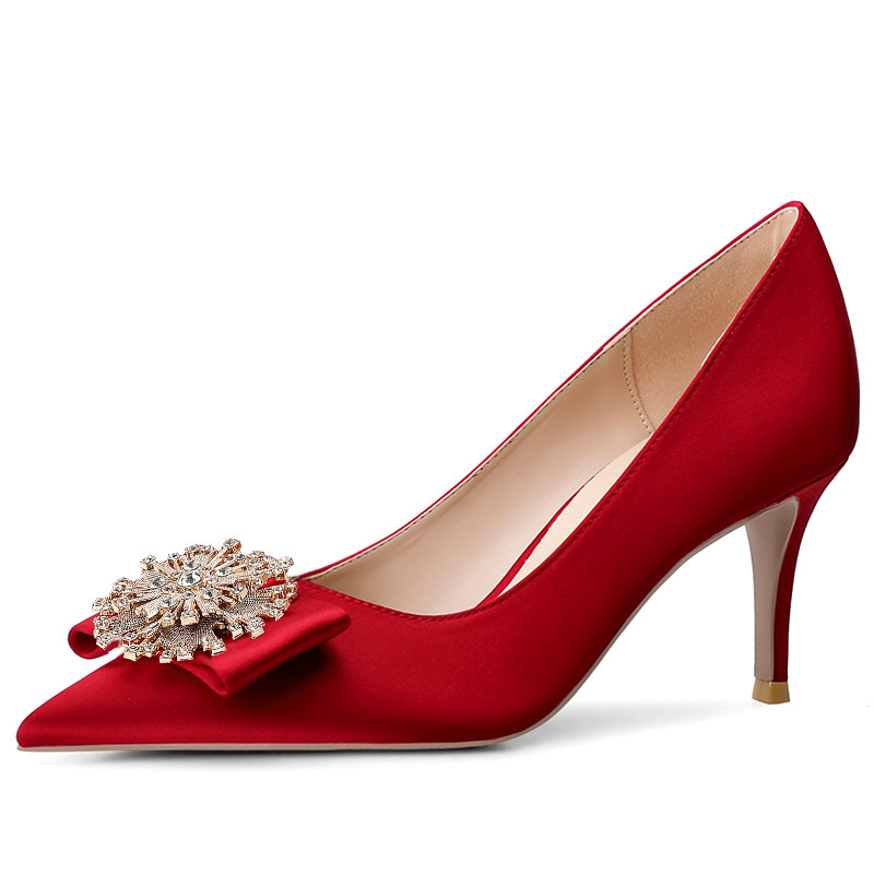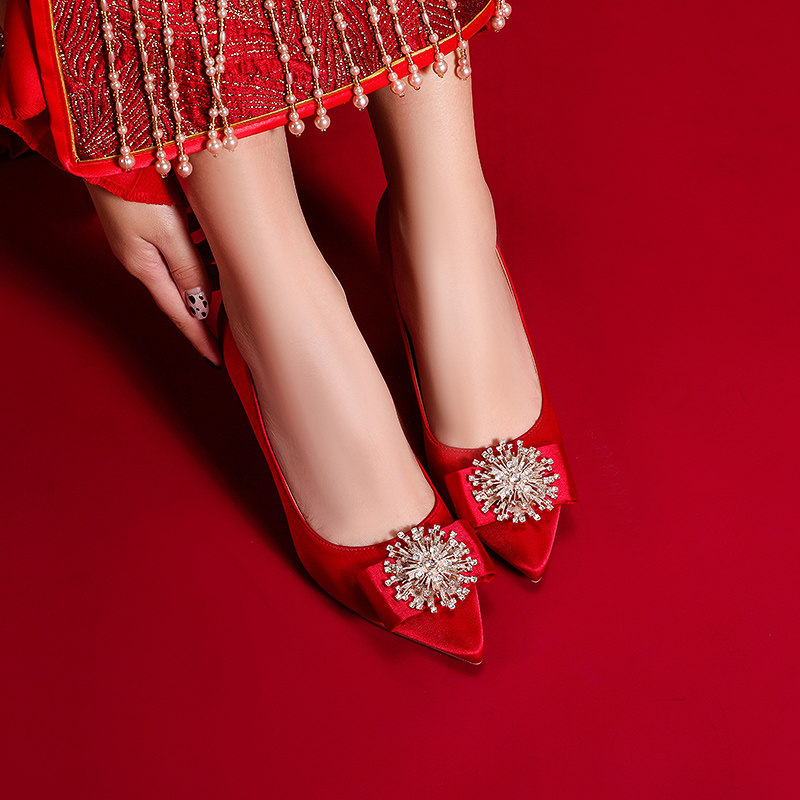 Wedding shoes 2020 new Chinese style rhinestone bridesmaid wedding red Xiuhe bridal shoes pointed toe stiletto high heels women