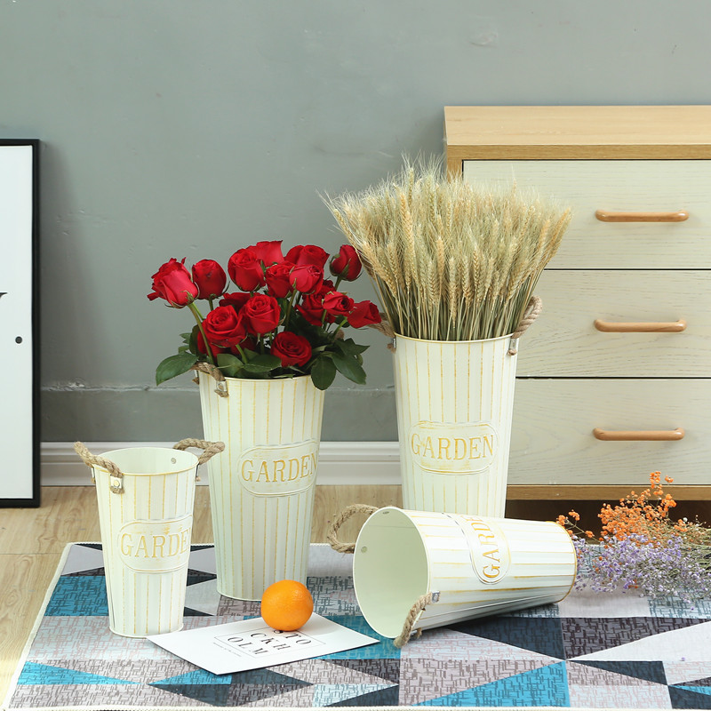 Retro white hemp rope bucket-height 25cm retro white hemp rope bucket-height 30cm retro white hemp rope bucket-height 35cm retro white hemp rope bucket-high 40cm retro white hemp rope bucket-one set of four