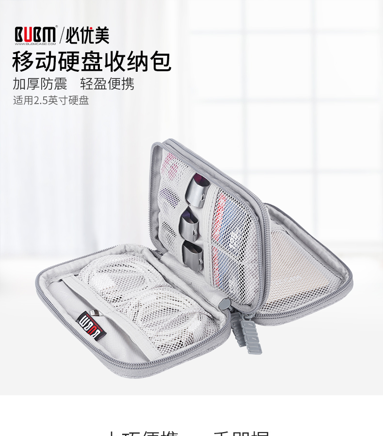 BUBM 2.5 inch mobile hard disk storage bag protective case multi-function installable charging cable charger head mouse charging treasure U disk Uton suitable for WD Toshiba Seagate Samsung hard disk package