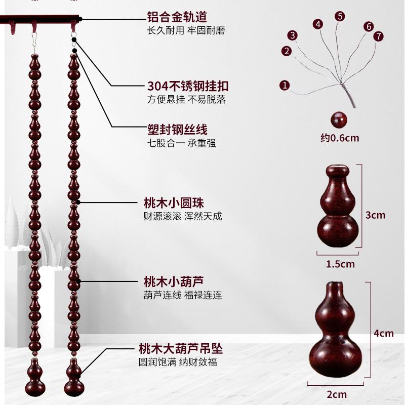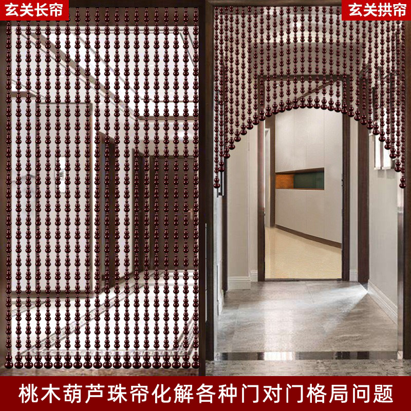 Full Peach Wood Calabash Bead Curtain Door-to-Door Partition Entrance Living Room Dressing Room New Home Solid Wood Door Curtain No Hole