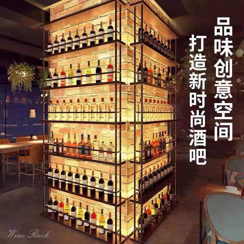 Bar Wine Rack Iron Art Wall-mounted By Wall Dining Hall Clear Bar Red Wine Wine Rack shelves Luminous Wine Cabinet