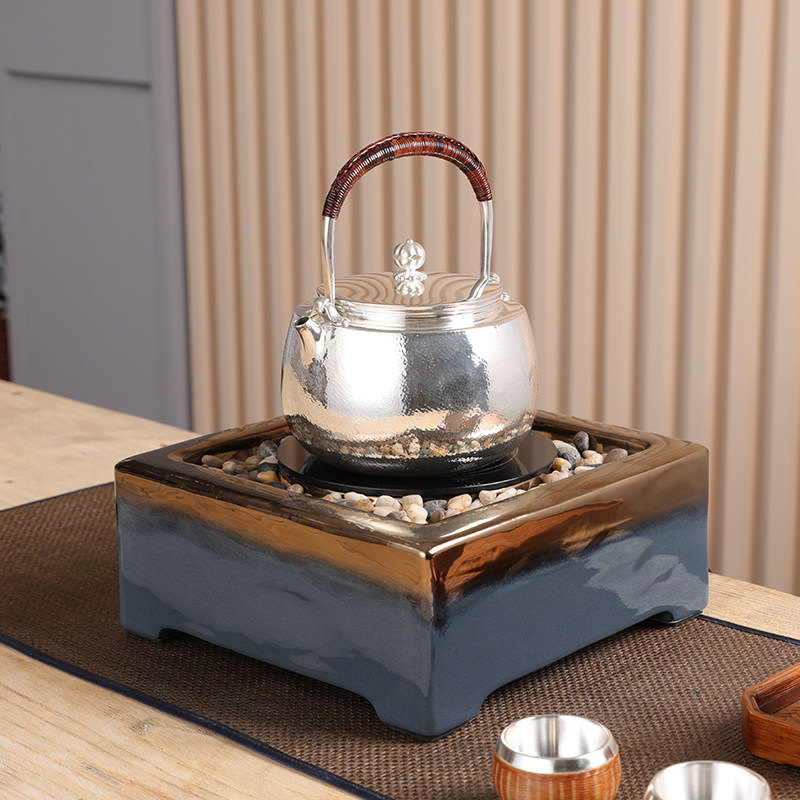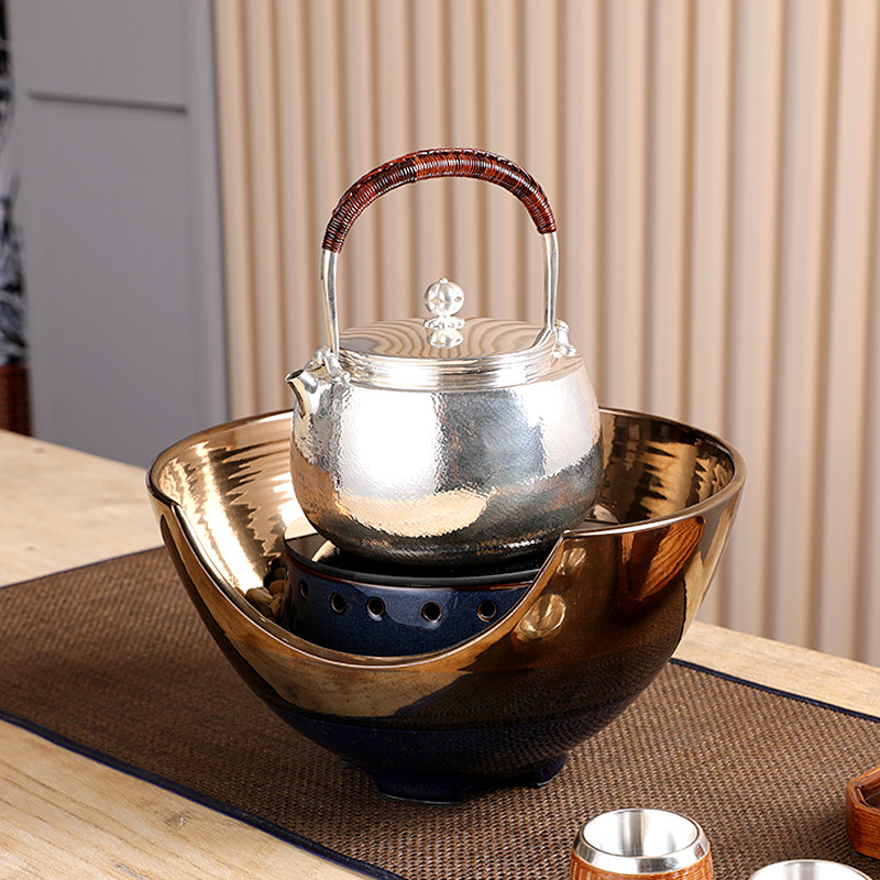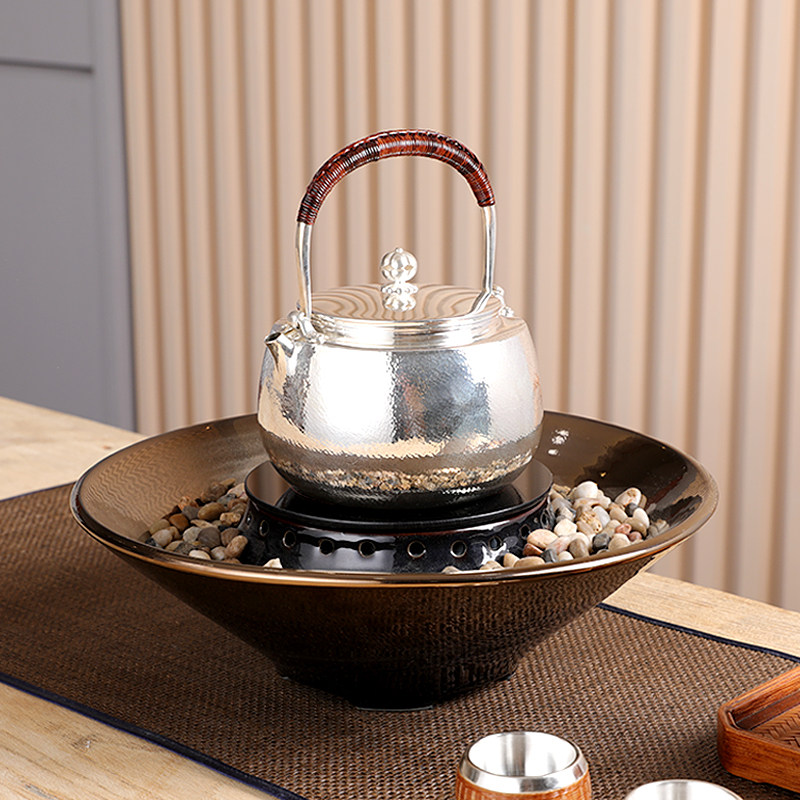 Fine workshop Japan imported silver pot sterling silver 999 kettle pure handmade one piece of silver playing sterling silver flat pill matte