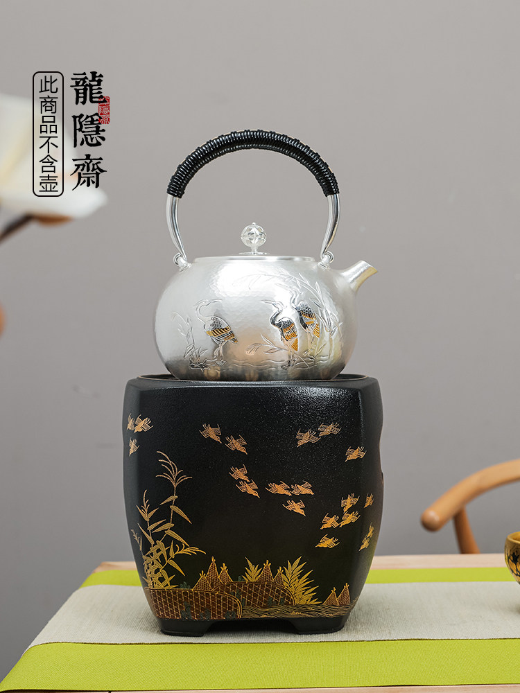 Longyinzhai black crystal stove to make tea household tea stove mute desktop small iron pot silver pot glass pot boiling water tea maker