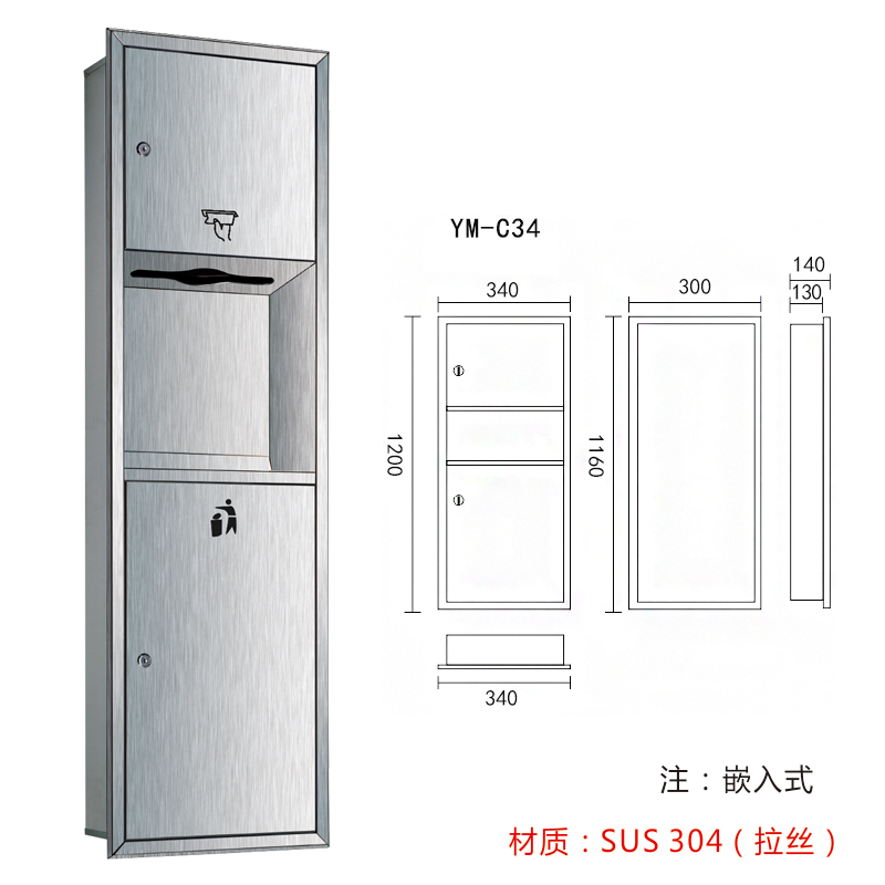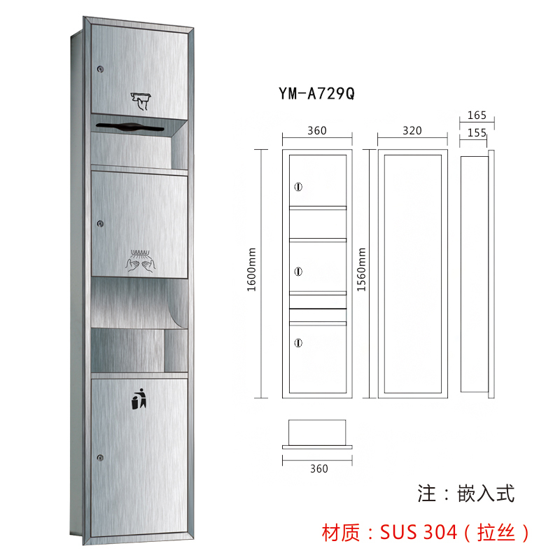 Stainless steel three-in-one mobile phone dryer public dressing room commercial concealed embedded toilet paper box hand dryer integrated