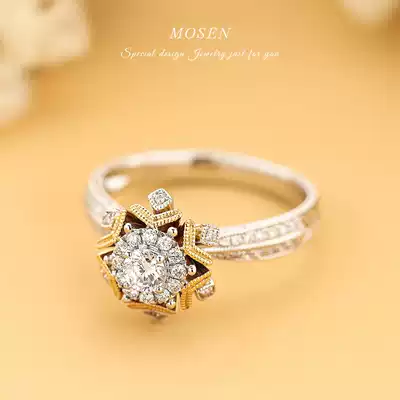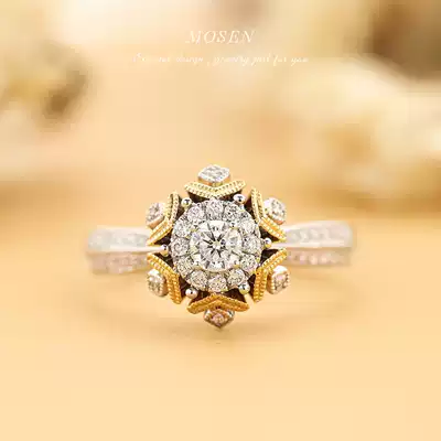 Mosen Mosen jewelry fireworks diamond ring ring ring stop 18K gold inlaid diamond ring wedding proposal custom empty support