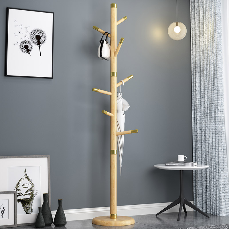 Solid wood coat rack Floor-to-ceiling simple modern single rod hanger Bedroom household net red multi-function clothes rack