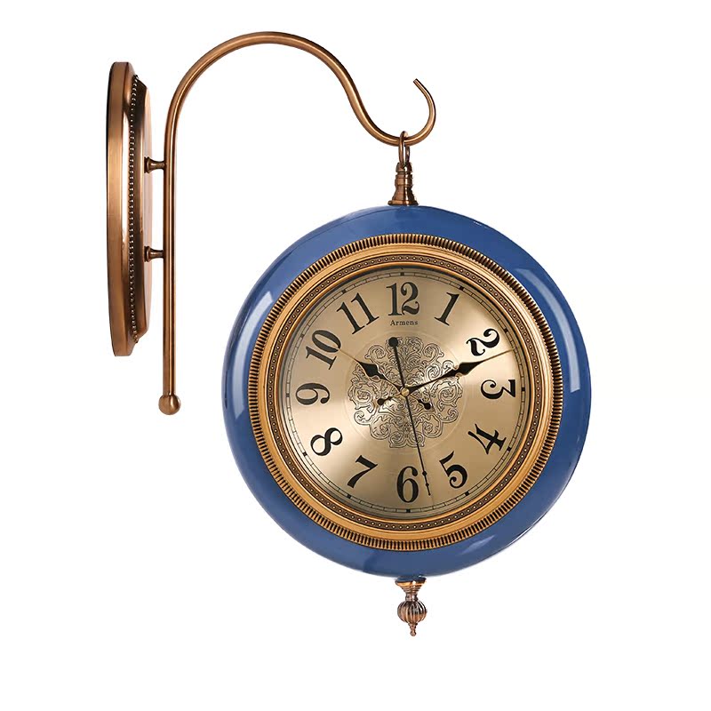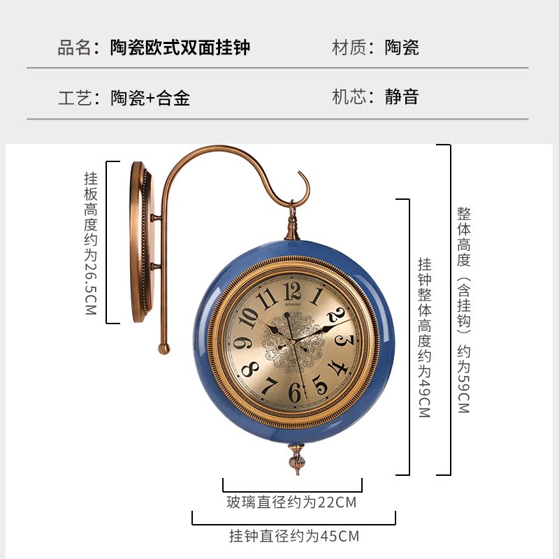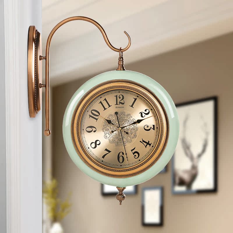 American double-sided metal wall clock Living room European luxury silent watch Fashion creative household two-sided hanging watch clock