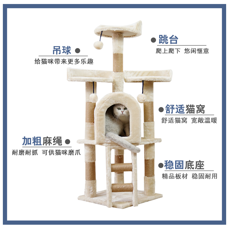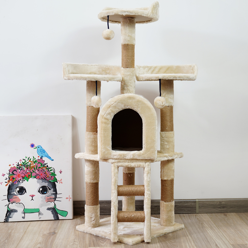 Kitty Supplies Cat Climbing Cat Cowl Cat Tree Integrated Multilayer Through Sky small ball Cat Tower Pet Jumping with Sword Sisal Toy