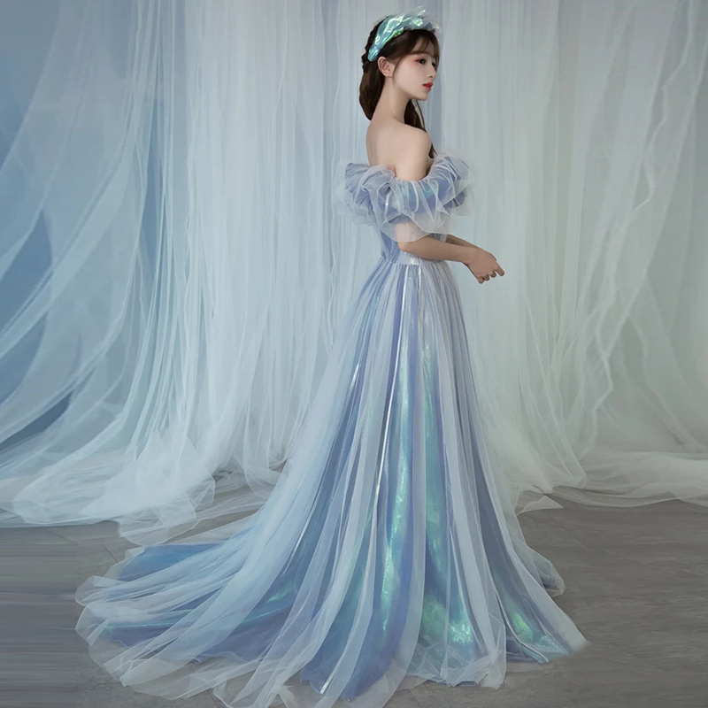 Evening gown dress Fairy Qi Students Banquet Host of the annual Arts Cortest solo Blue Birthday High-end Atmospheric End
