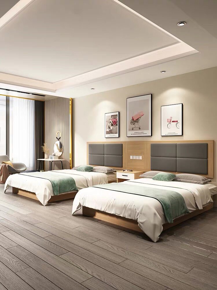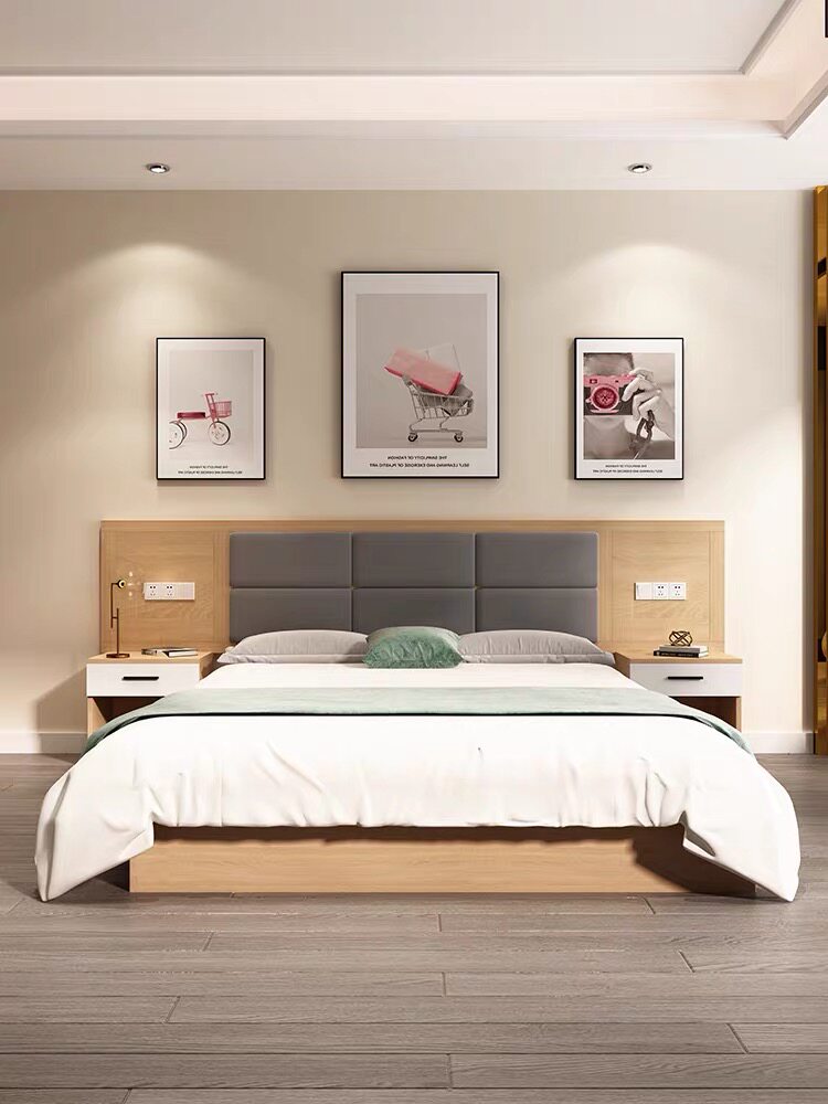 Customized express hotel furniture full set of hotel standard room bed bed and breakfast apartment room single room soft backboard 1 2 meters bed