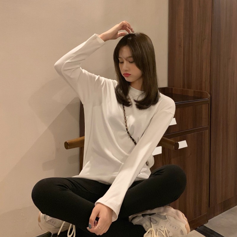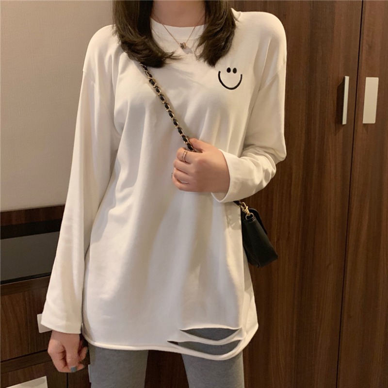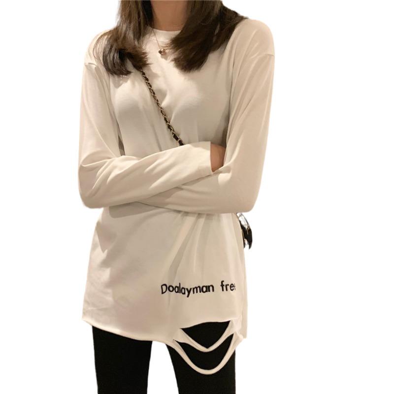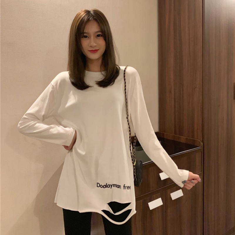 Sanskrit's new Korean version looses the hole in white undershirt women's fall with a long sleeve foreign pie 100 lap T-shirt blouse