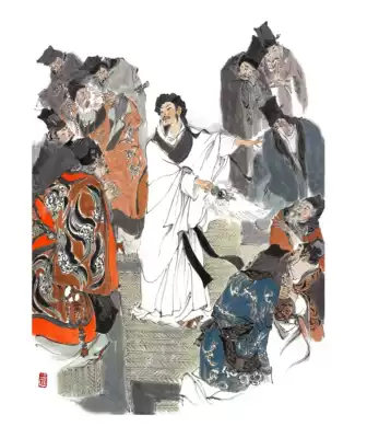 National treasure painter Dai Dunbang "The Three Kingdoms" (mounted) tongue war group Confucian living room hanging painting Q