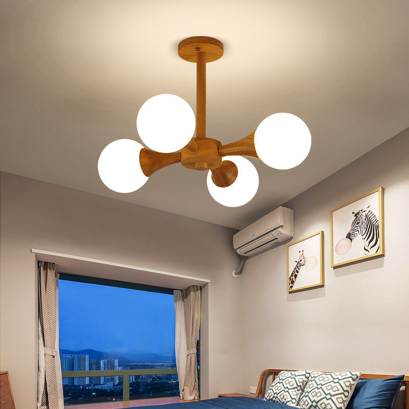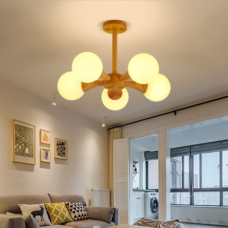 Nordic Chandelions Minimalist Modern Living Room Light Romantic Cozy Solid Wood Dining Room Light Day Style Creative Magic Bean Bedroom Lamps