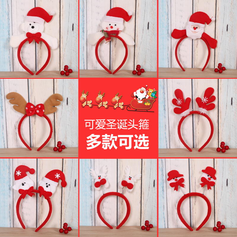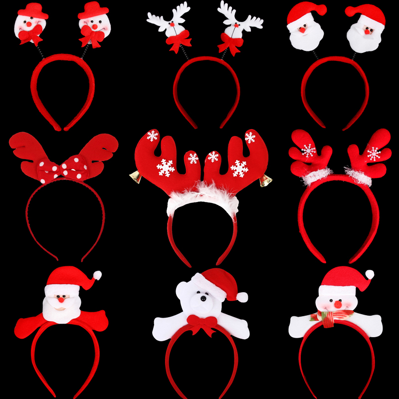 Christmas Hair Hoop Christmas Hat Hair Hoop Children Suit Dress Headwear Hair Clip Adult Snowman Deer Corner Head Button Decorative Items