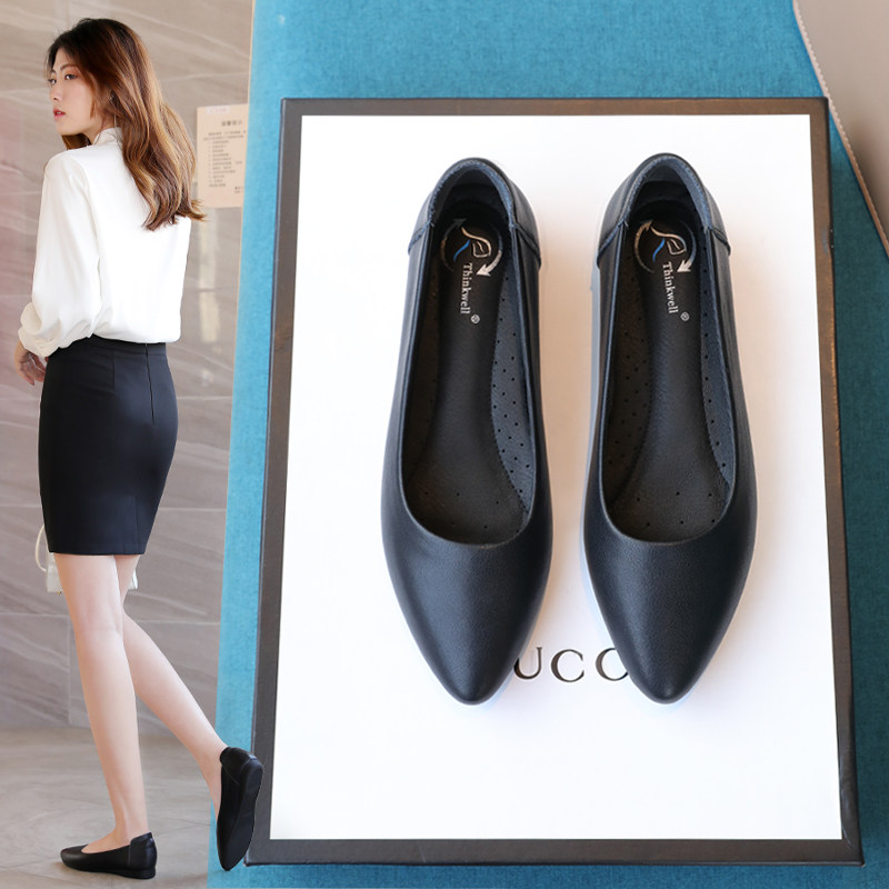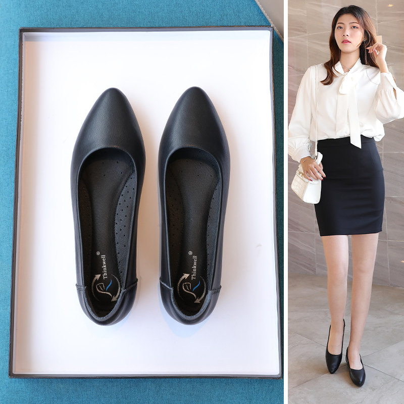 Leather work shoes black leather shoes comfortable soft soles and ladyshoes not tired shoes flat shoes professional shoes