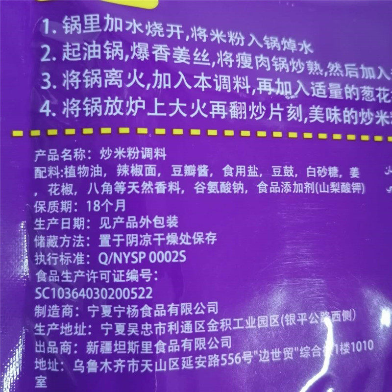 A total of 2 bags of Xinjiang Chongwu stame fried rice noodles seasoning liquid sauce Qong ustam mixed with Tan Sri