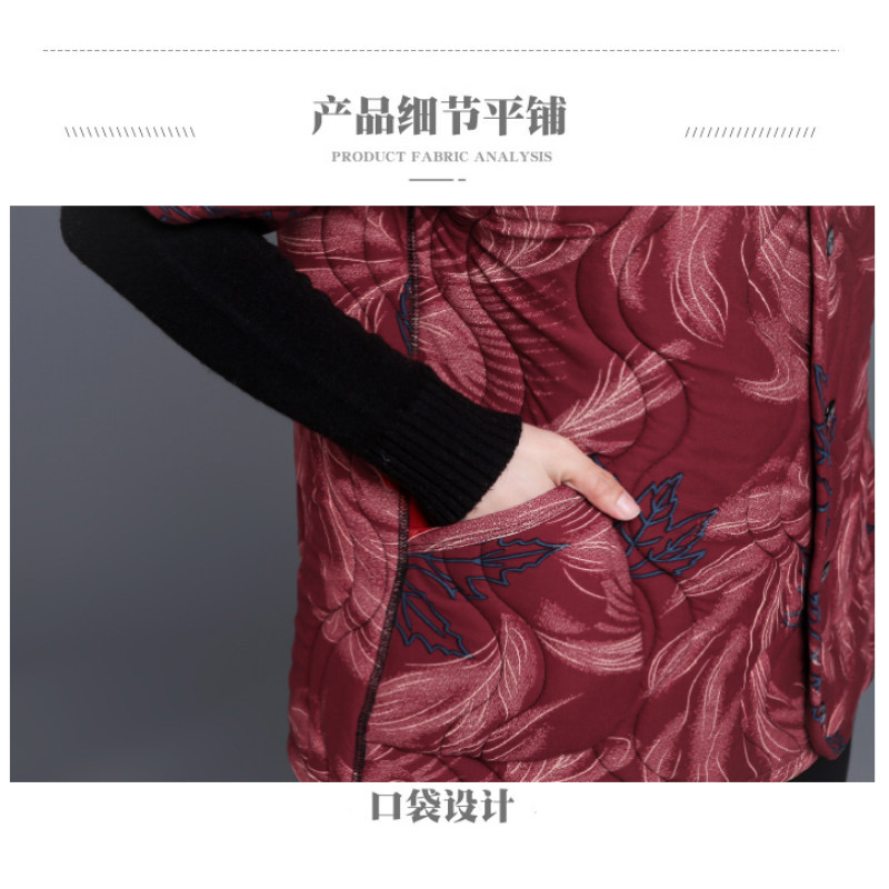 Middle-aged and elderly women's half-sleeved vest autumn and winter coat cotton vest mother's dress plus velvet thickened vest plus fertilizer cotton waistcoat