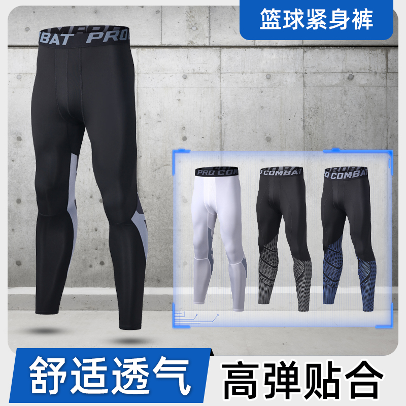 Tight sports pants men high elastic compressor pants American basketball shorts suit for bottle nine-pant running training
