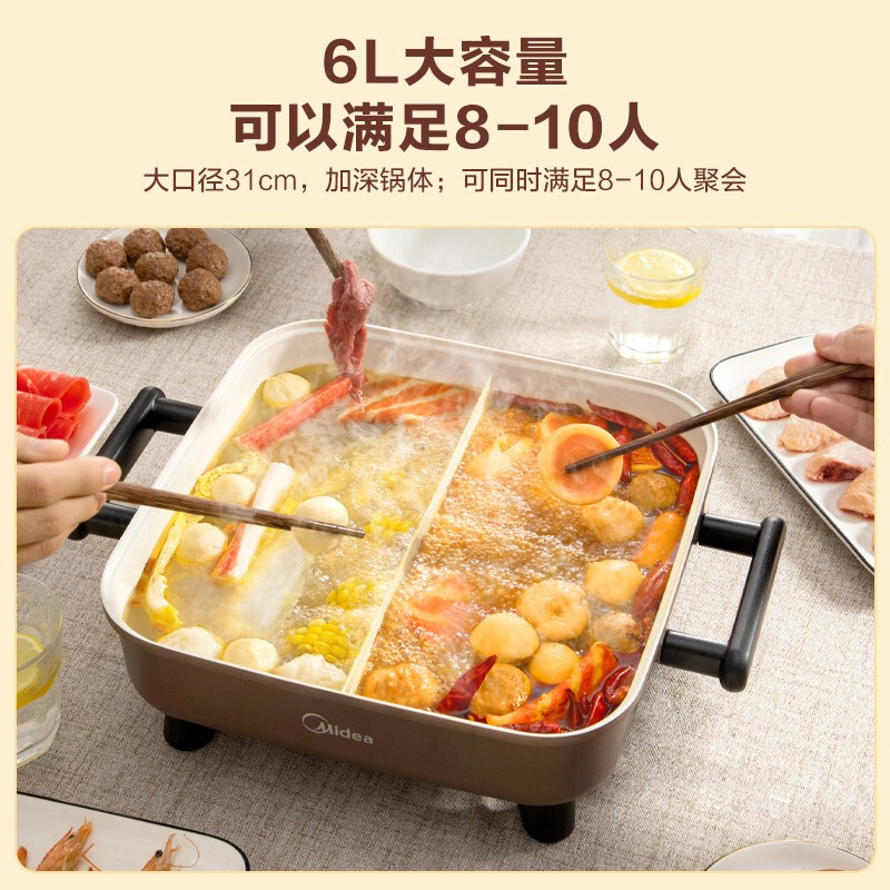 Midea Midea 6L electric hot pot electric hot pot multi-purpose electric cooking pot mandarin duck pot non-stick DY3030Easy102