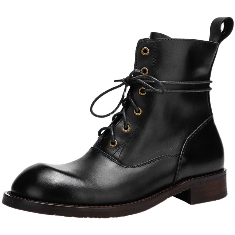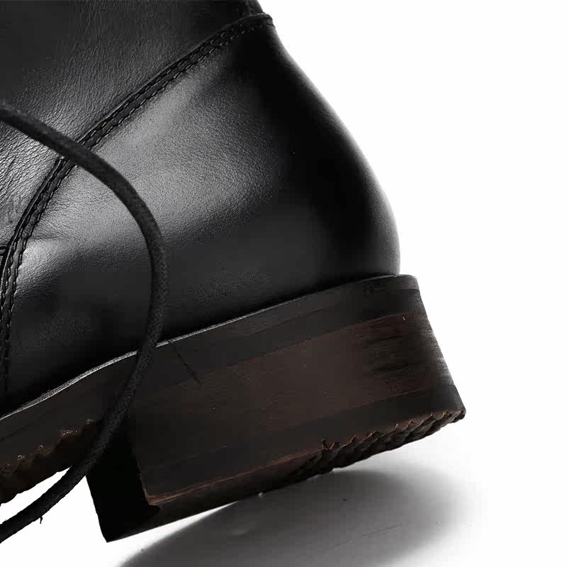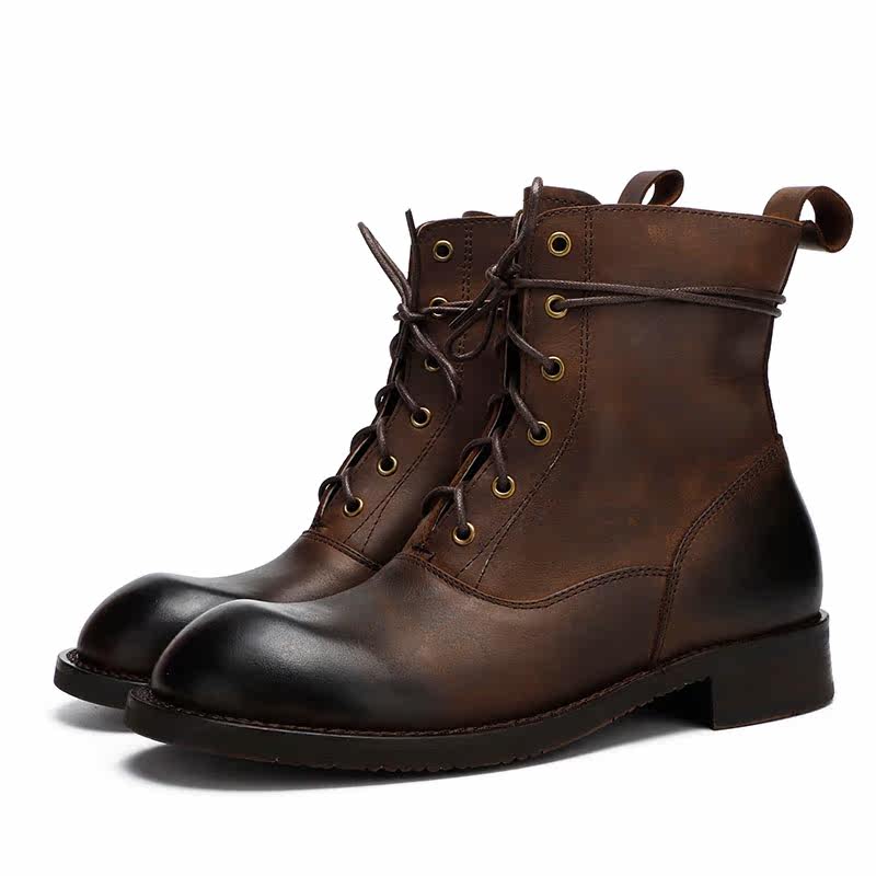 Spring and Autumn handmade leather big-toe leather boots tooling motorcycle boots men's high-top Martin boots lace-up retro hip-hop style to keep warm - Taobao