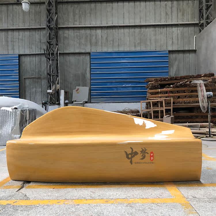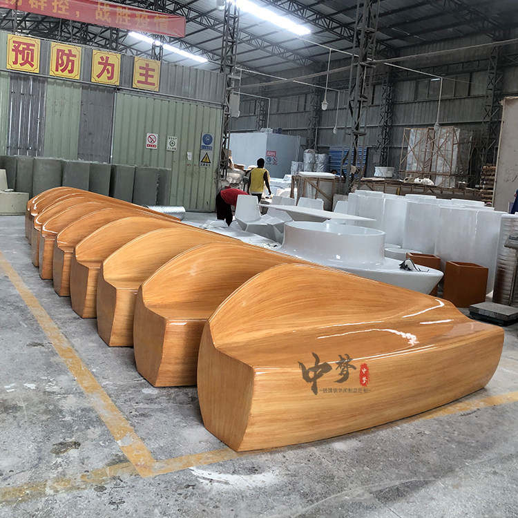 Fiberglass strip shaped wood grain seat commercial street green plant flowerpot bench outdoor square shopping mall custom flower device
