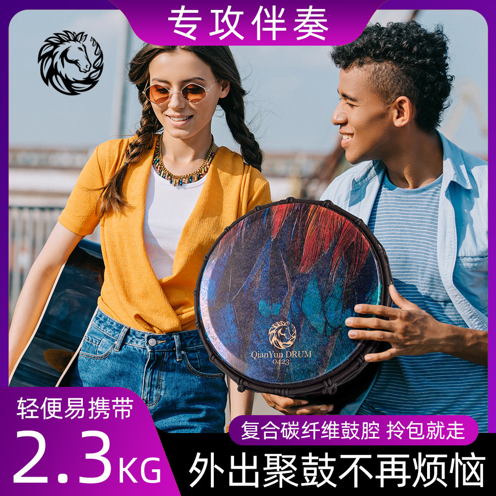 Dry rhyme high-value peacock purple 12-inch African drum professional carbon fiber tambourine adult beginner children playing Lijiang