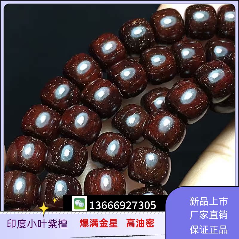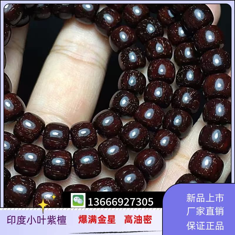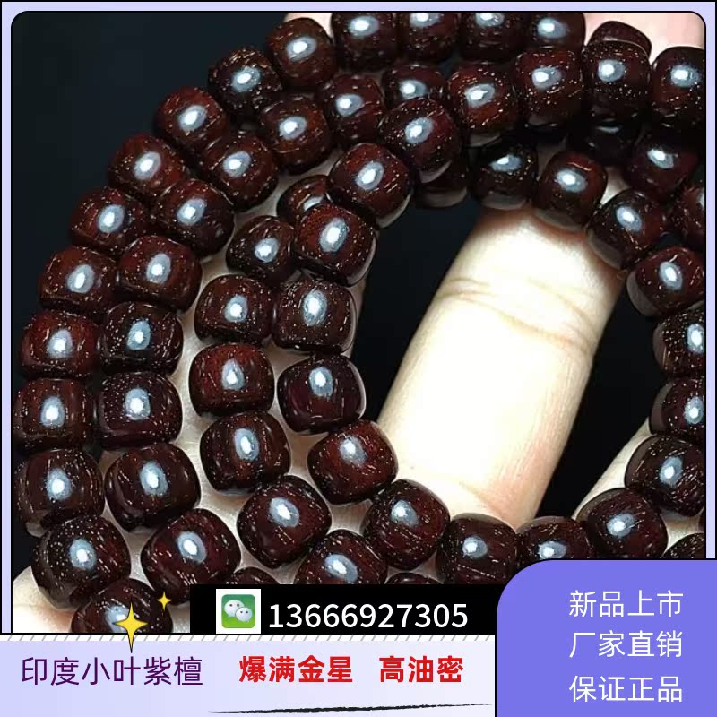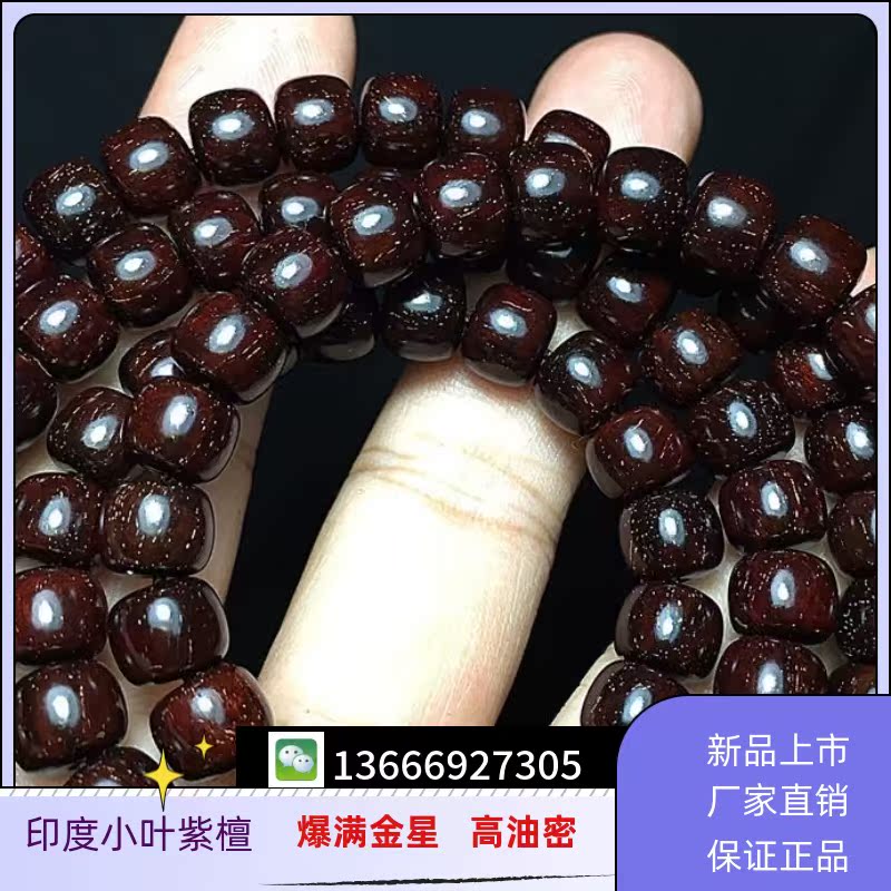 Indian Little Leaf Purple Sandalwood Hand String Gold Star High Oil Dense Old Material Glass Bottom 7 * 8 Apple Pearl Old Pearl 108