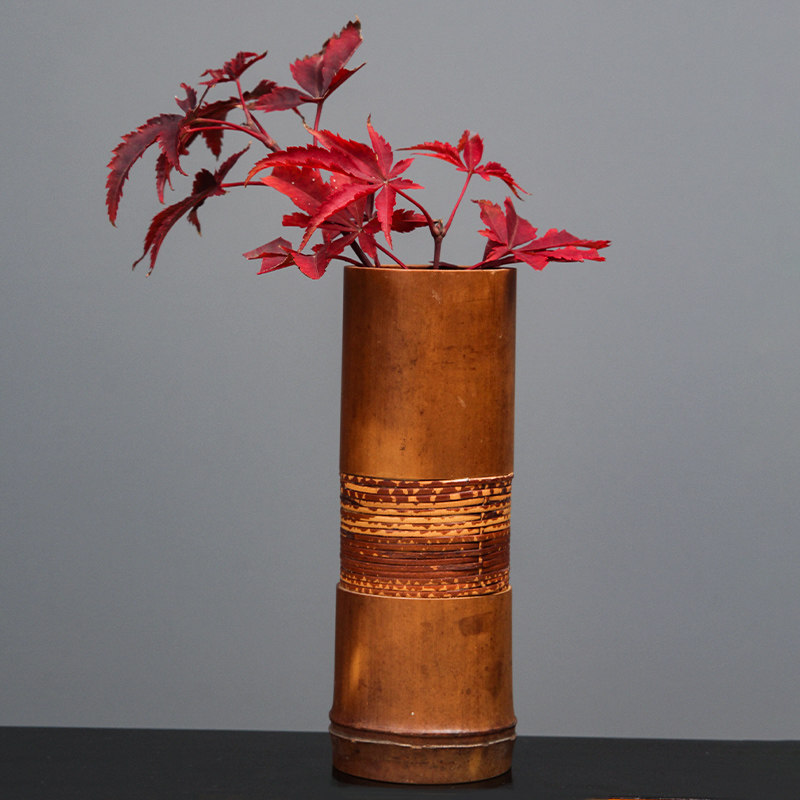 Single winding flower ware Japanese and wind green flower ware carbonized original bamboo tube flower ware around the vine flower ware