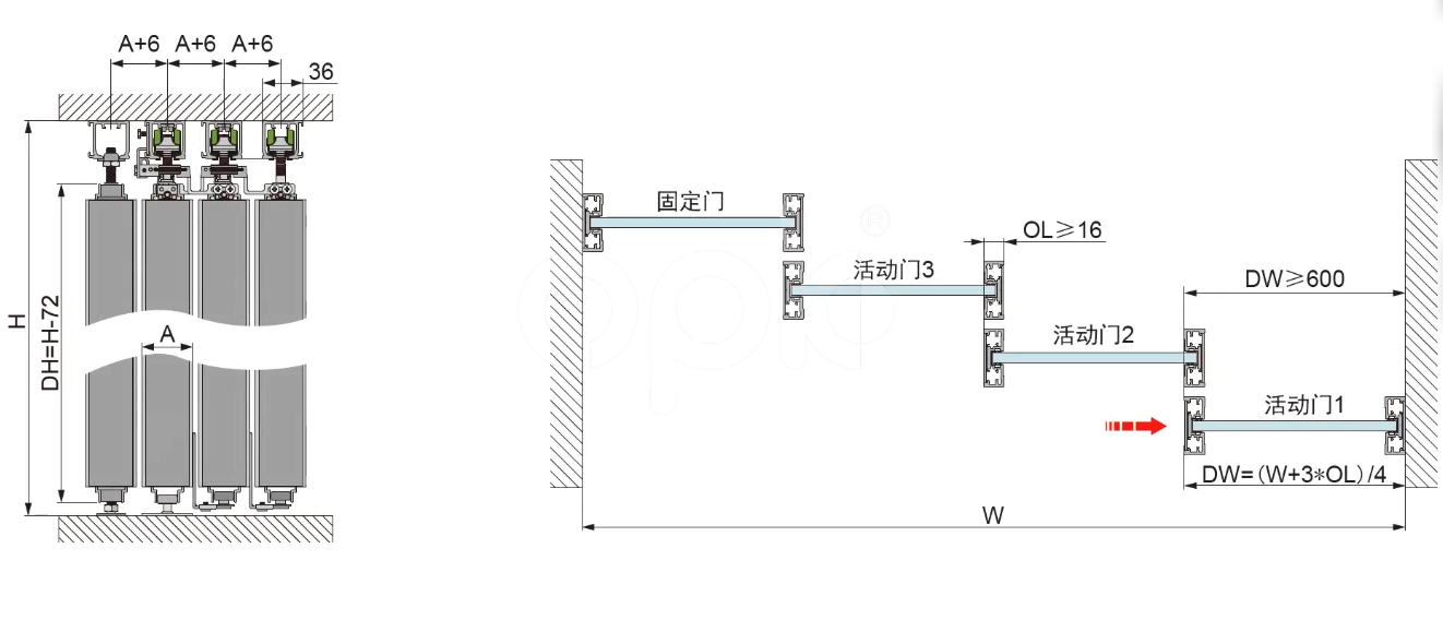 35 thick frame extremely narrow 6MM moving door hanging wheel damping linkage three-linkage four-linkage sliding door OPK