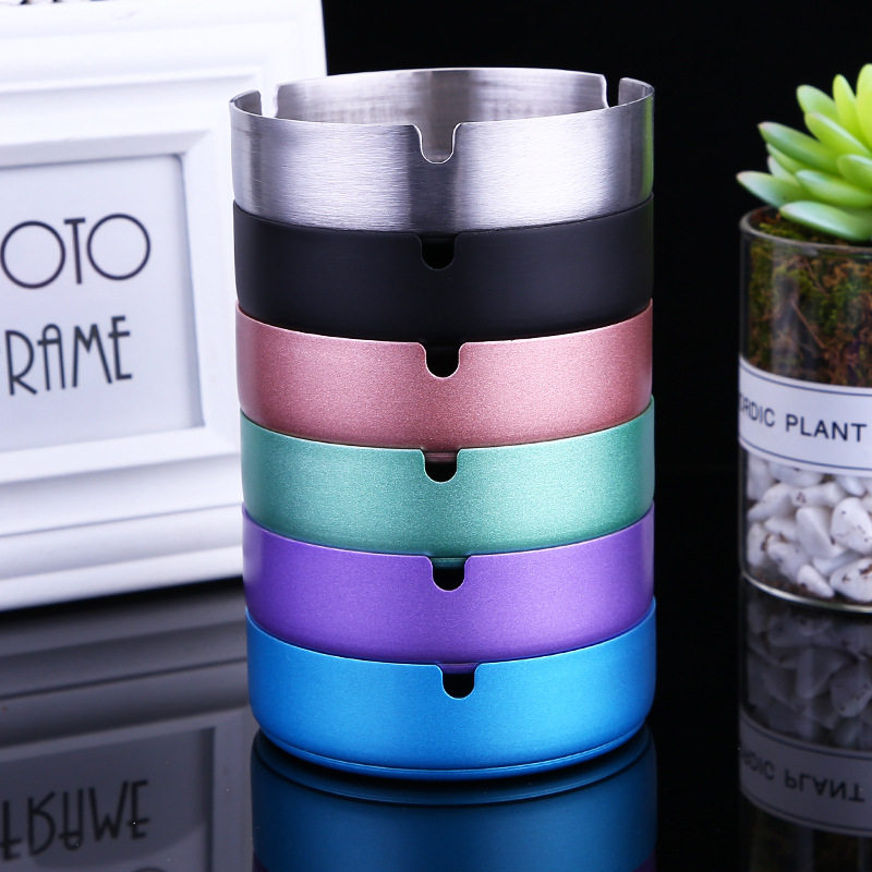 Ashtray metal stainless steel household personality trend solid color round hotel dining room Internet cafe gift custom logo