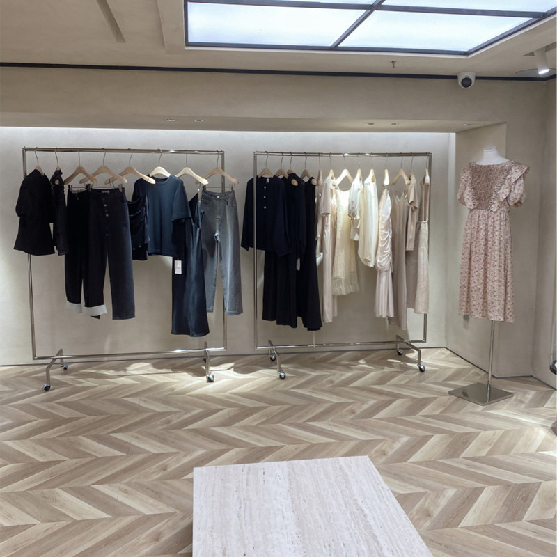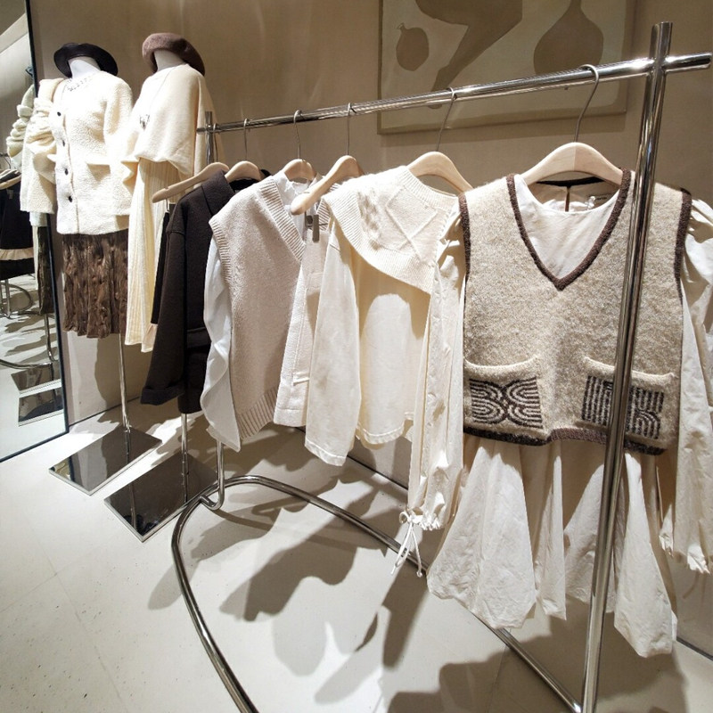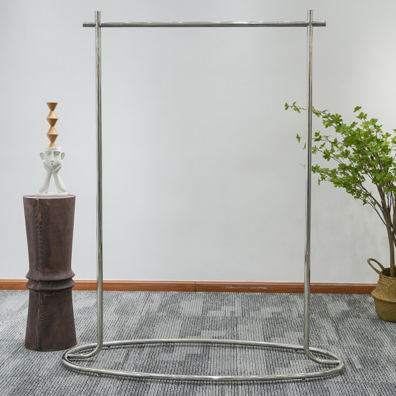 Clothing Store Show Rack Ground Style Display Shelf Stainless Steel Upscale Middle Island Positive Hanging Side Hanging Clothes Hanger Women's Clothing Store Shelves