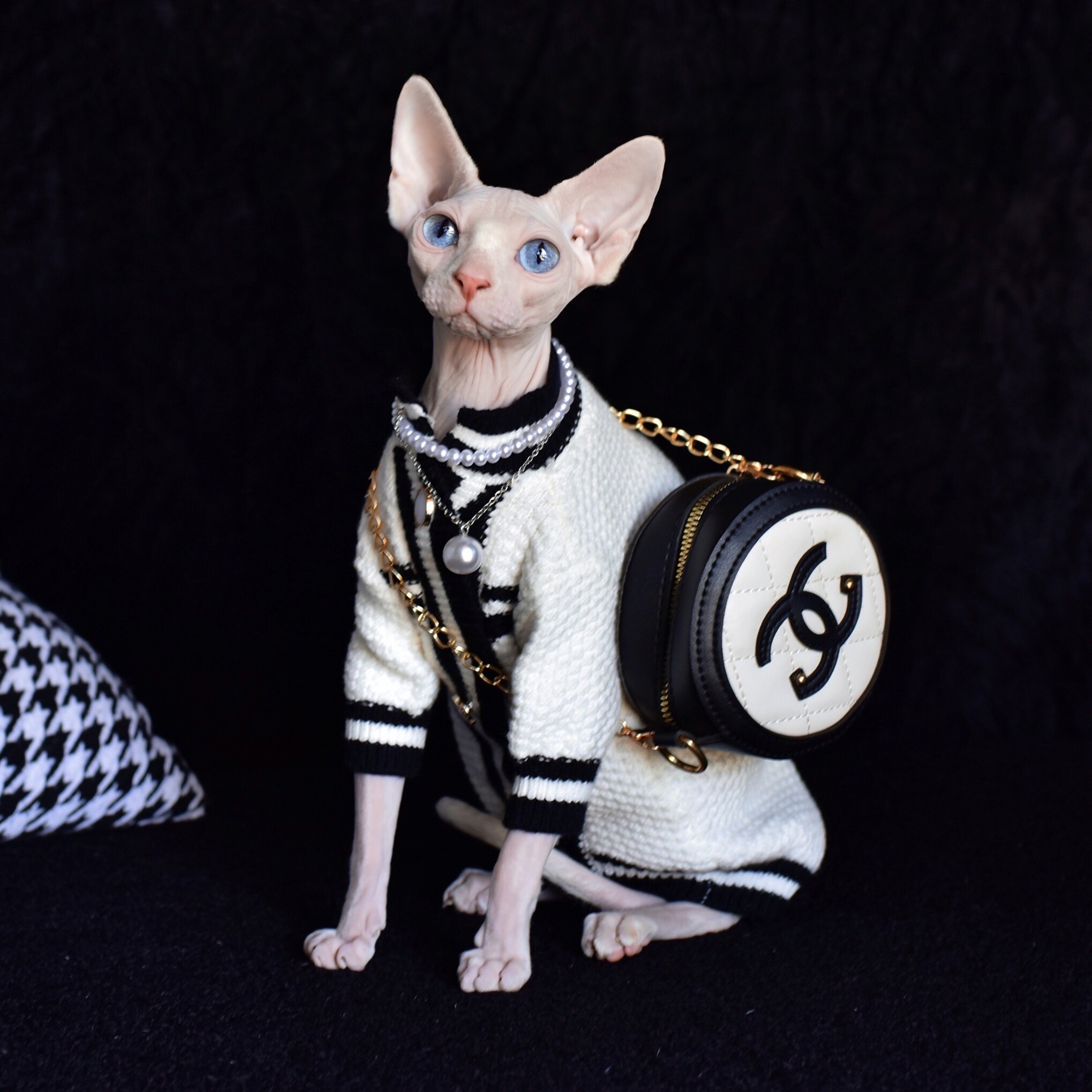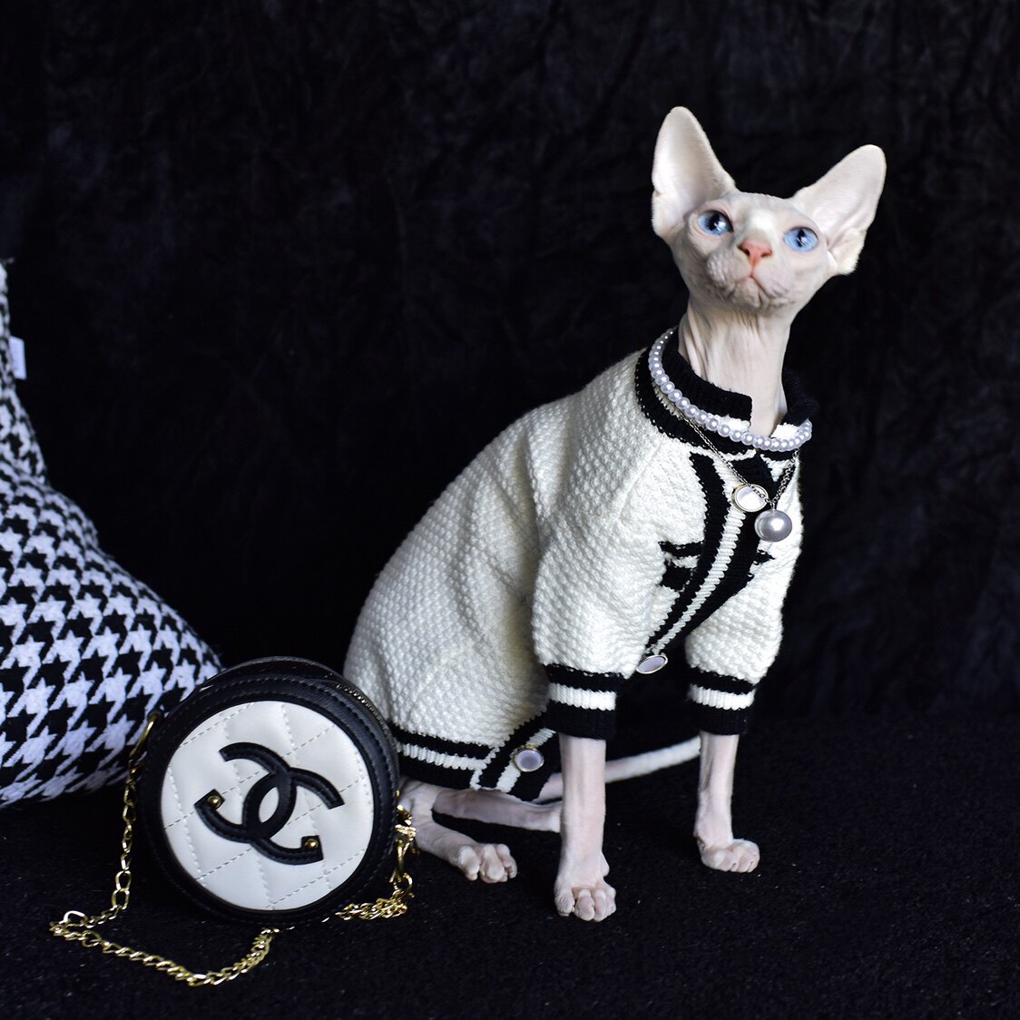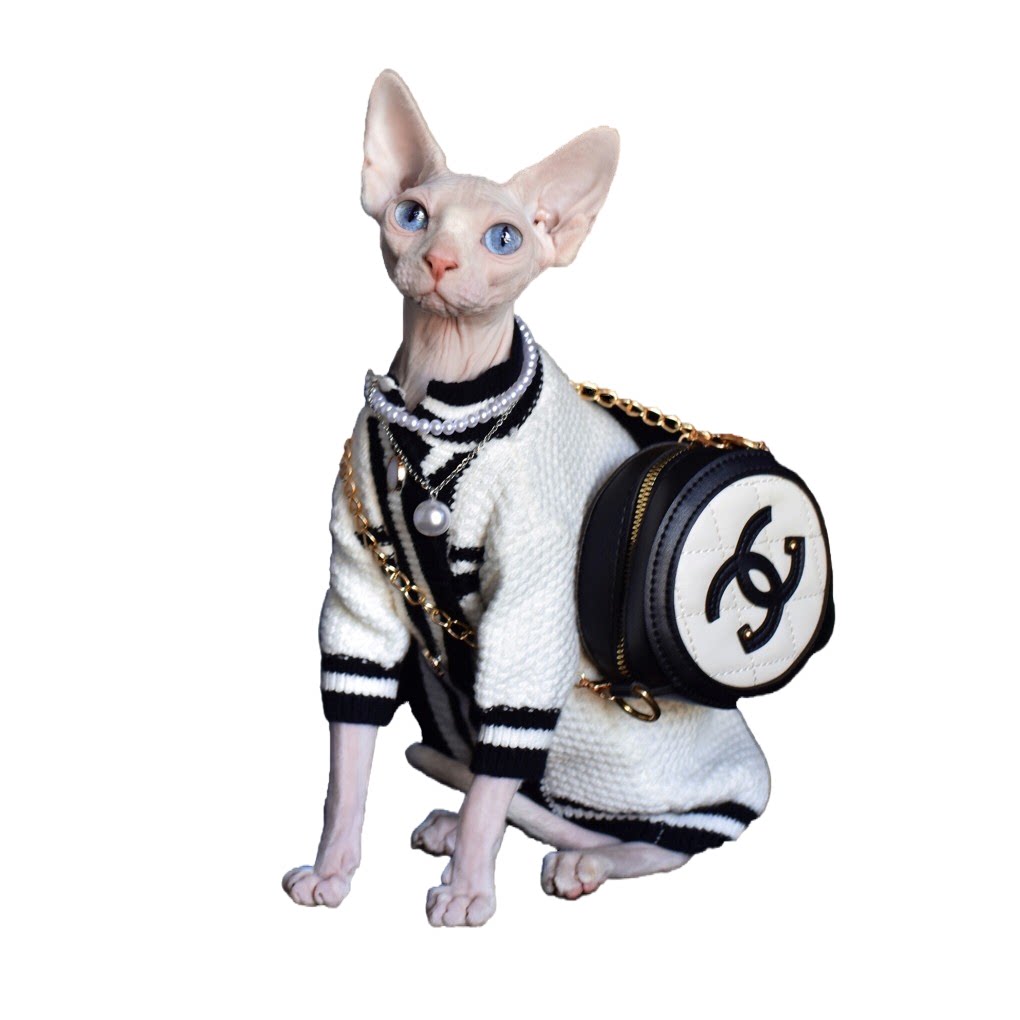 YH - celebrity temperament big brand small fragrance style sanitary clothing cardigan outer four seasons Devens sphinx hairless cat clothes
