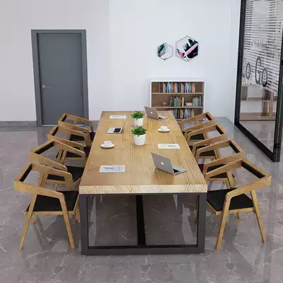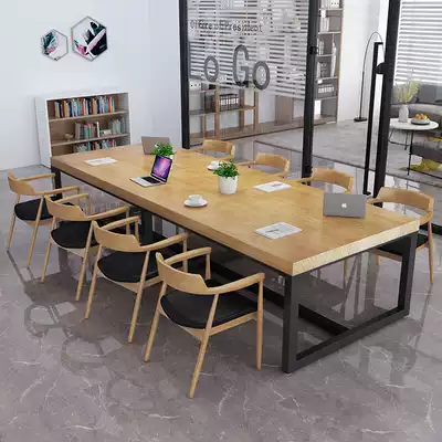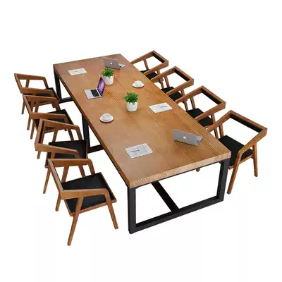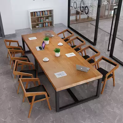Solid wood conference table long table simple modern desk industrial style training table size negotiation table and chair combination
