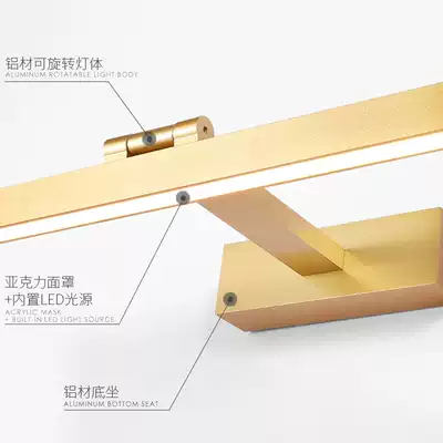 Golden mirror front light led dressing room non-perforated light luxury simple bathroom cabinet mirror cabinet special light toilet mirror light