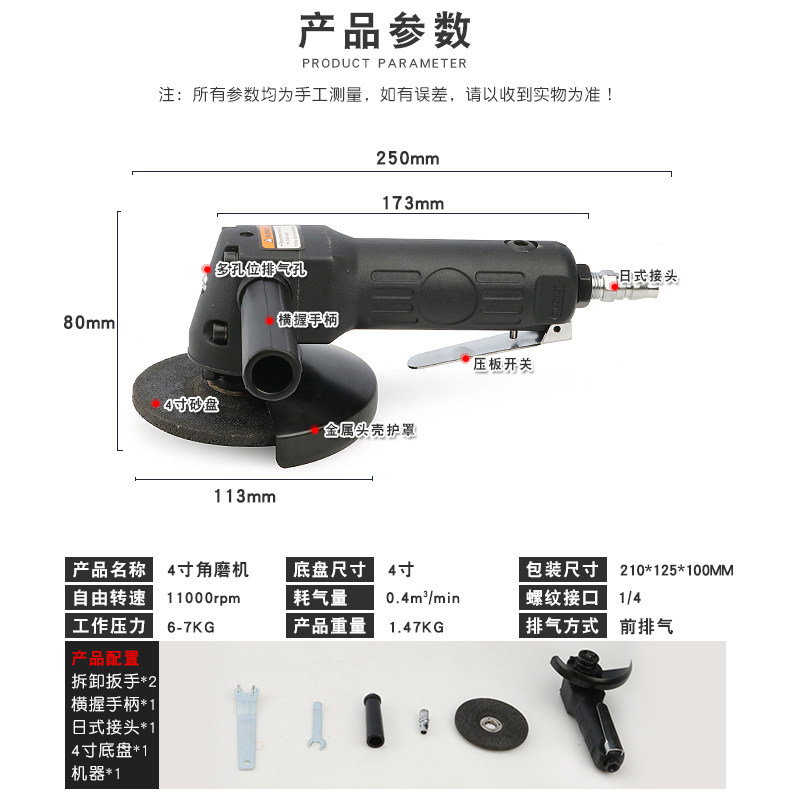 4 inch pneumatic angle grinding turbine polishing machine polishing machine grinder grinder tool