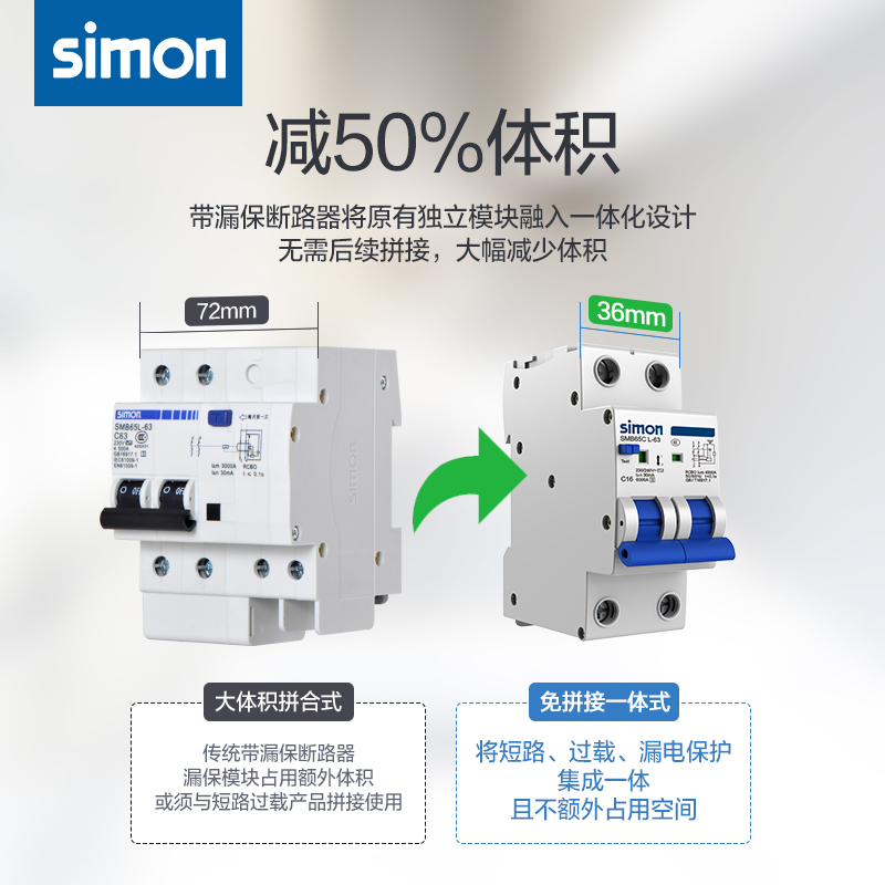 Simon leakage protector home 220V air switch with 1P2P3P4P leakage protection 63a circuit breaker switch 32a