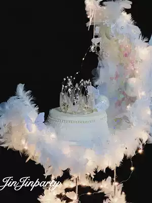 Little red book moon boat cake display stand Chinese Valentine's Day romantic Pearl yarn flower moon boat white gauze skirt Valentine's Day arrangement