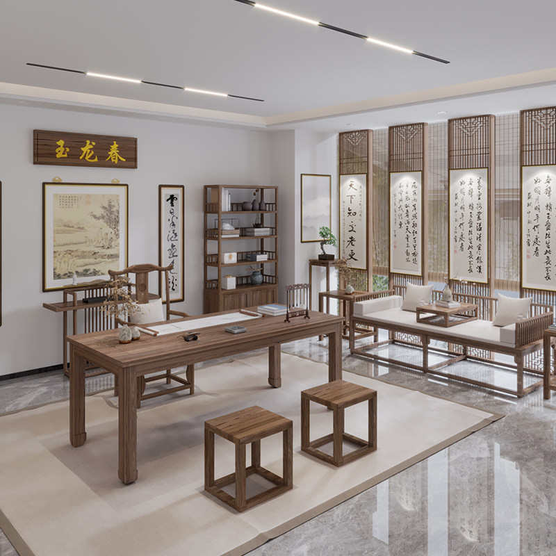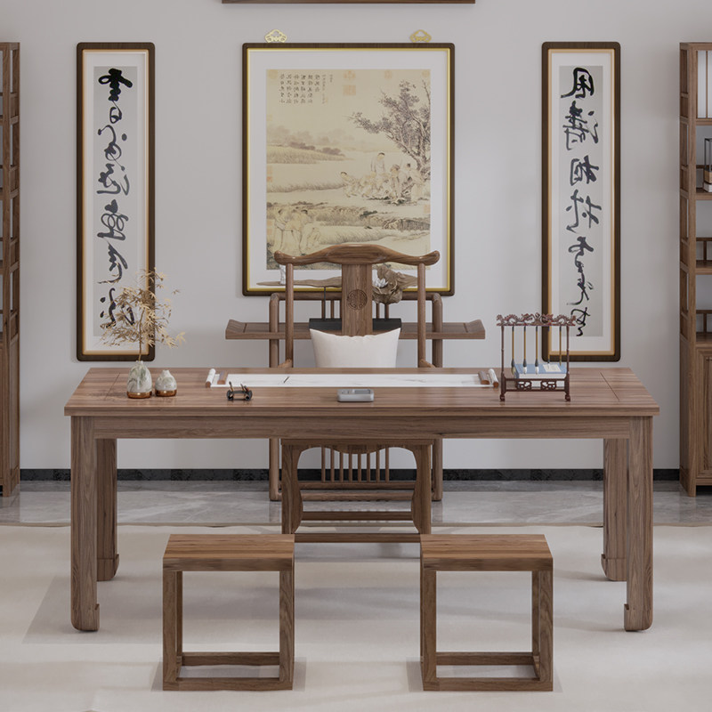 New Chinese style all solid wood desk and chair combination study furniture home office computer desk calligraphy calligraphy and painting desk